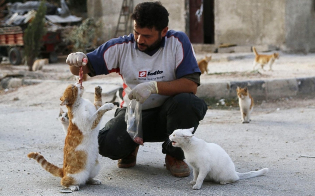 Ονομάζεται Mohammad Alaa Aljaleel αλλά οι περισσότεροι τον γνωρίζουν ως «ο άντρας των γάτων του Χαλέπι», καθώς έχει γίνει ο σωτήρας για πάνω από εκατό αδέσποτες και εγκαταλελειμμένες γάτες. Πολλές από αυτές απολάμβαναν στο παρελθόν ένα σταθερό και φιλόξενο σπιτικό, μέχρι που οι ιδιοκτήτες τους αναγκάστηκαν να δραπετεύσουν από τη Συρία αφήνοντάς τις πίσω.