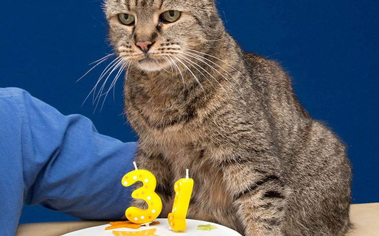Παρά το προχωρημένο της ηλικίας του και το γεγονός ότι πέρυσι υπέστη ένα εγκεφαλικό, φαίνεται πως έχει ακόμα πολλές ζωές, αφού συνεχίζει να επιζητά τα χάδια των «γονιών» του και να τους επισκέπτεται στο κρεβάτι καθημερινά στις 5 το πρωί για να εξασφαλίσει το πρωινό του.